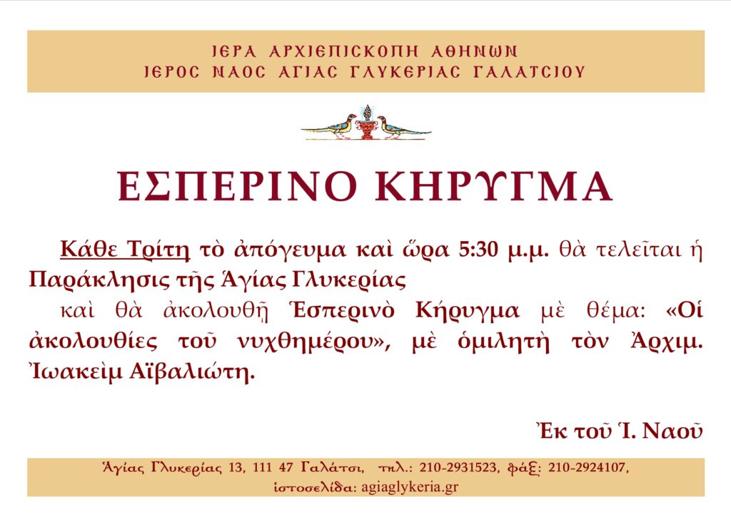 Ἑσπερινὸ Κήρυγμα