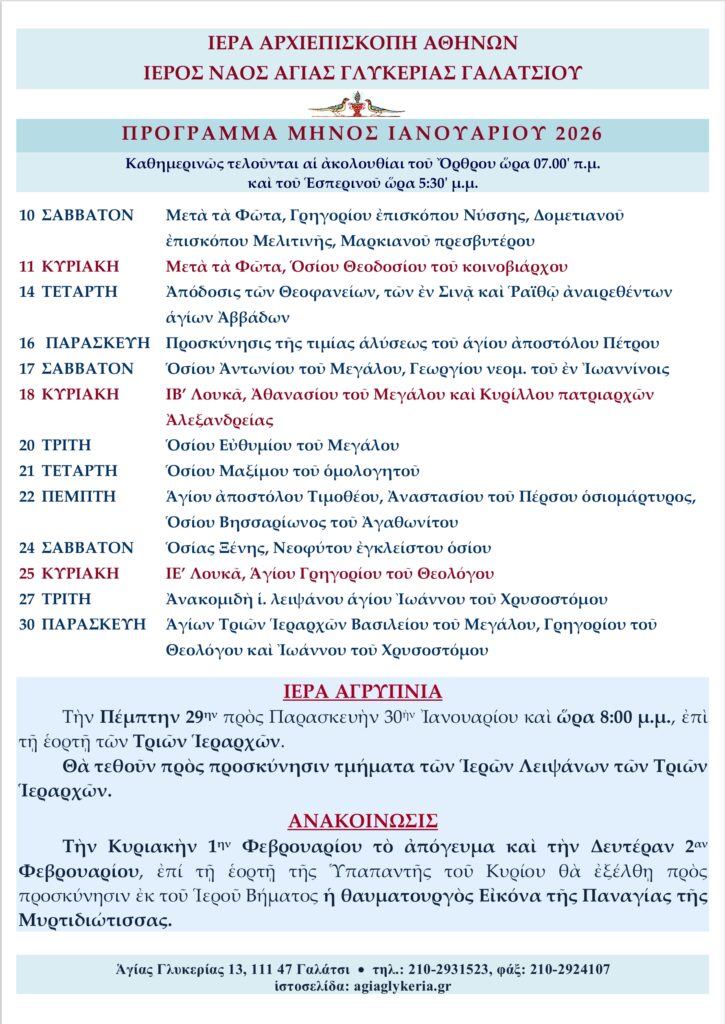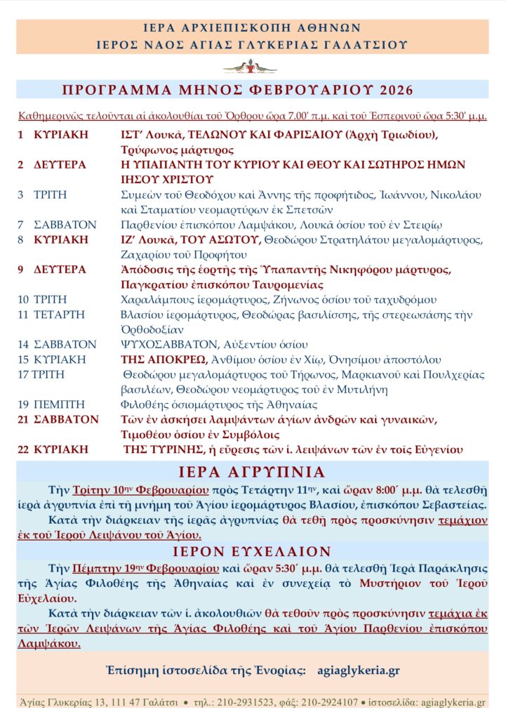 Πρόγραμμα Ἱεροῦ Ναοῦ