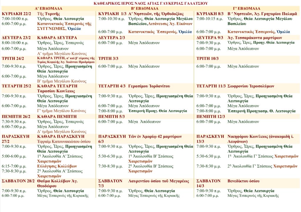 Πρόγραμμα Δ-Ε-ΣΤ Ἑβδομάδων Μεγάλης Τεσσαρακοστῆς 2025