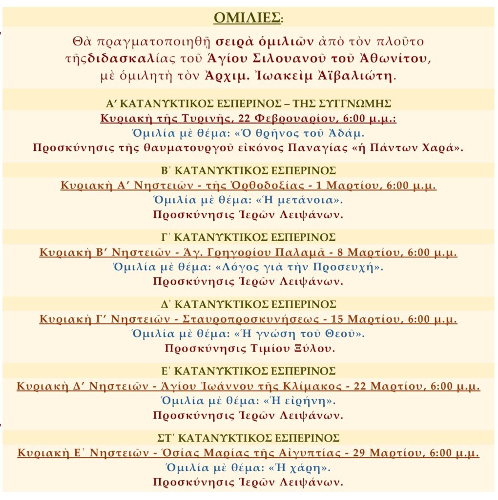 Ὁμιλίες Μεγάλης Τεσσαρακοστής 2026